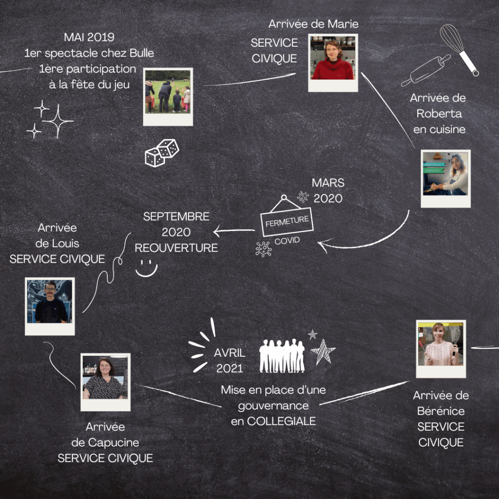 - Les animations et partenariats proposés, les jeux et jouets mis à disposition, l’accueil d’enfants en bas âge, nécessitent du temps de préparation, d’entretien et de ménage plus que n’importe où ailleurs. Mais c’est aussi l’ADN de BULLE 🧬. Si vous aimez le café justement parce qu’il est humain et attentionné à l’égard de tous, parce qu’il y a toujours quelque chose à y faire et à y découvrir, aidez l’association à en prendre soin !